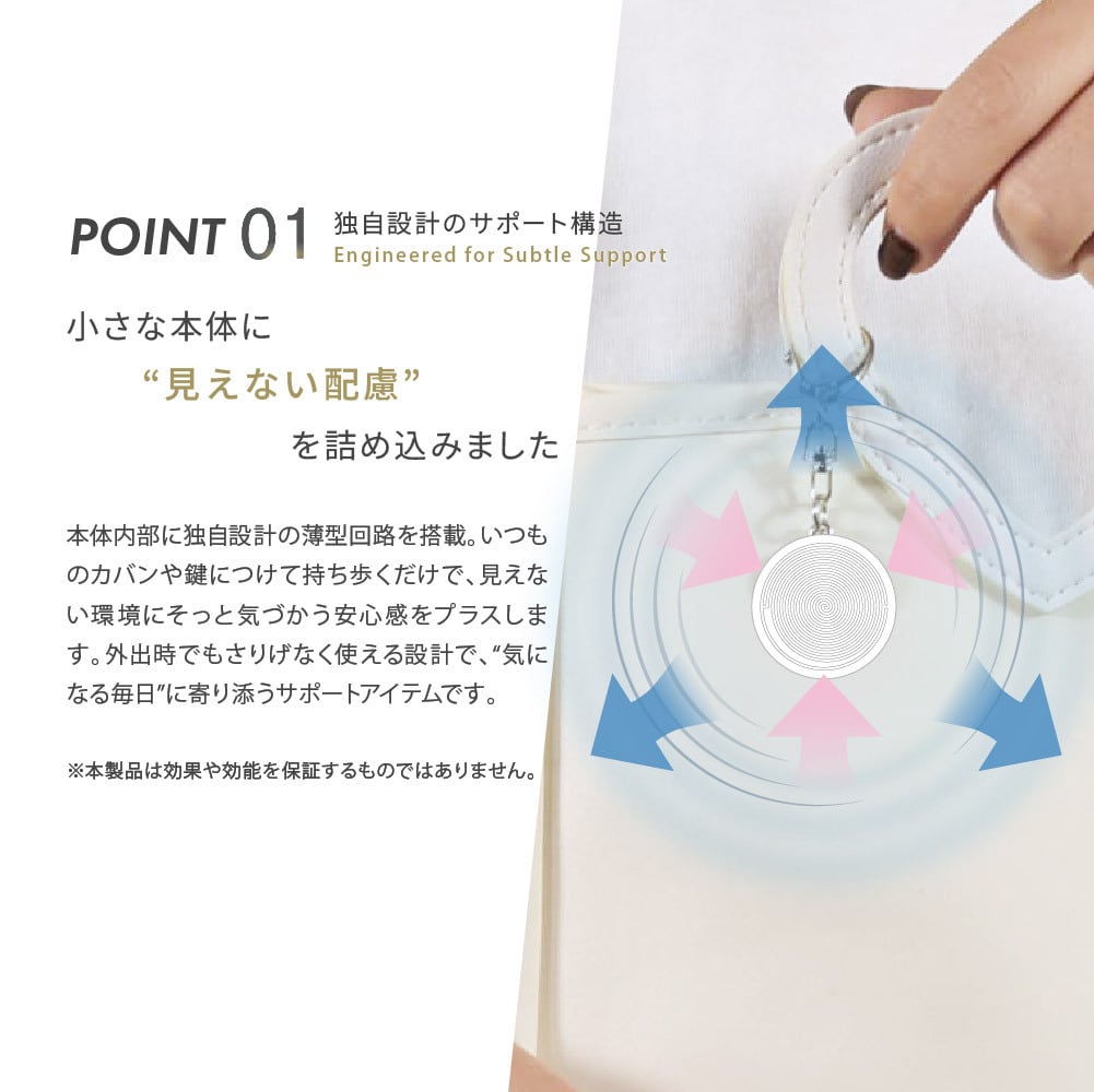 バッグ・鍵・ポーチなど、日常的に持ち歩くアイテムへ取り付けてご使用いただけます。